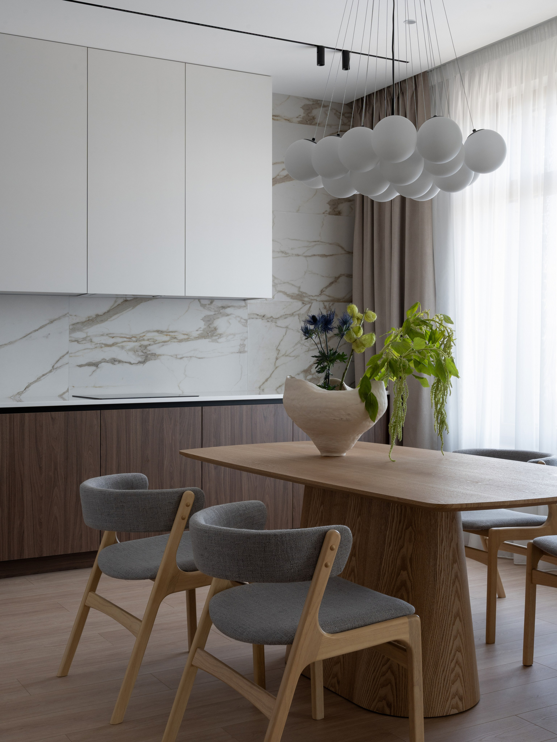 натуральные материалы и выверенное зонирование сочетаются с пластикой форм и
