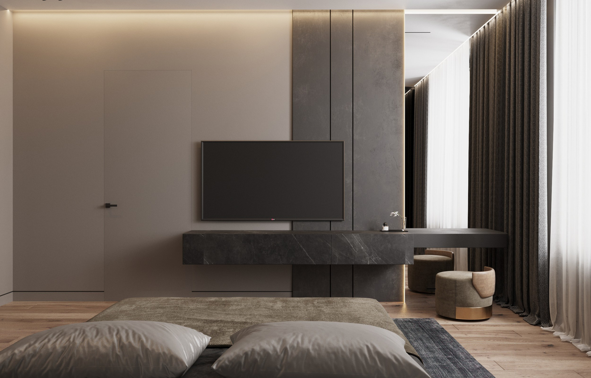 Простые и лаконичные формы, чёткие линии и понятные объёмы определяют современную стилистику интерьера. Большие окна наполняют пространство естественным светом, создавая ощущение единения с природой и позволяя лесу стать частью внутреннего мира дома.Тёплые оттенки дерева перекликаются с текстурами камня, создавая уютную и благородную атмосферу. Каждая деталь тщательно продумана, а общая стилистика выверена по всему дому, обеспечивая целостность и гармонию пространства.Этот дом — не просто место для жизни, а пространство, где природа и архитектура сливаются в едином ритме, создавая идеальные условия для семейного уюта и спокойствия.